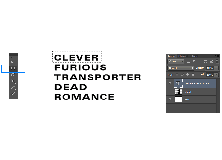 • Now focus on your merged text layer.“Ctrl + Click” its thumbnail and do the same process with “Rectangular Marquee Tool” that we done in Step 4.And select your first letter. • After selection press “Ctrl + J” to duplicate our selected letter to new layer.