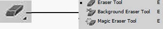 ►Eraser Tool, Background Eraser Tool, Magic Eraser Tool (E)